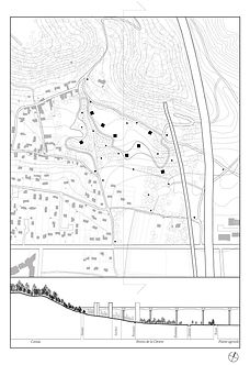 Adossé au relief de la Côtière et dominé par ses viaducs, le site de projet est destiné à accueillir une intervention manifeste tirant parti de forces en présence. Cela conduit à une prise de territoire radicale.